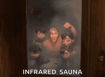 Frozen characters, including Kristoff, look surprised and overwhelmed in an infrared sauna.