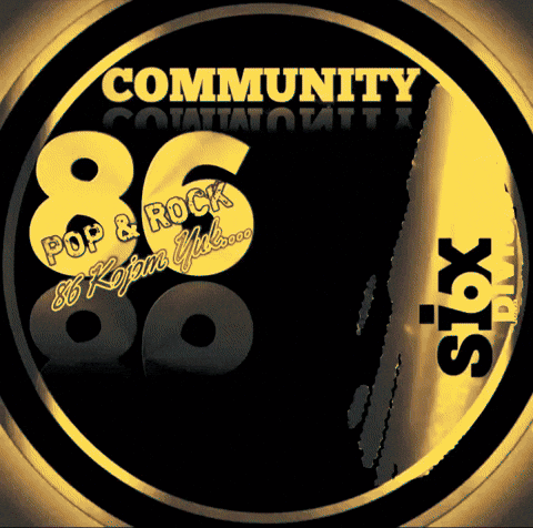 Divisi6 logo featuring 'Community 86 Pop & Rock' text, with a color shift from orange to purple.