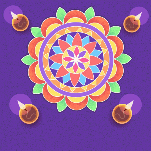 A vibrant graphic wishing 'Happy Lakshmi Puja' for Diwali, featuring a colorful mandala and diyas.