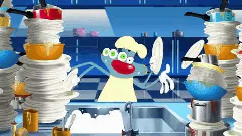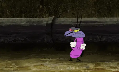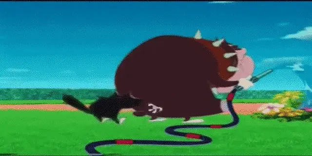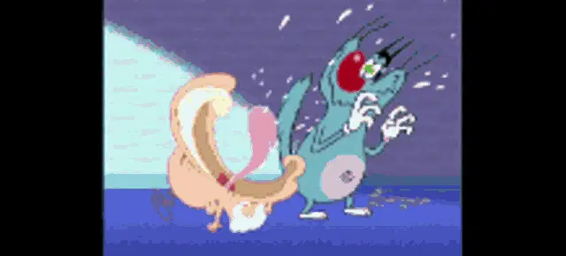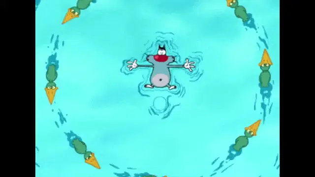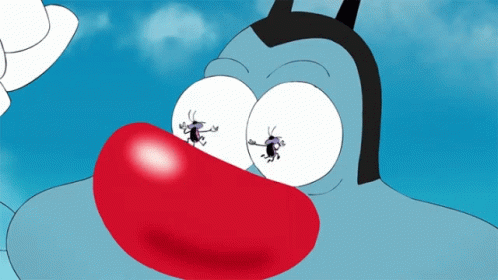 Oggy from Oggy and the Cockroaches experiences dizziness, seeing cockroaches dancing in his eyes.