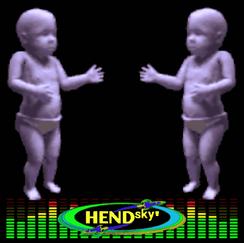 Two animated babies dance to the beat with a colorful equalizer and 'SKYNET' logo.
