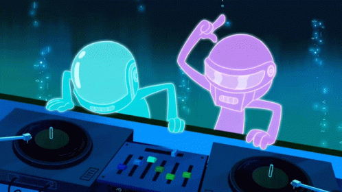 The Powerpuff Girls, also known as Las Chicas Superpoderosas, are having fun as DJs at a lively party.
