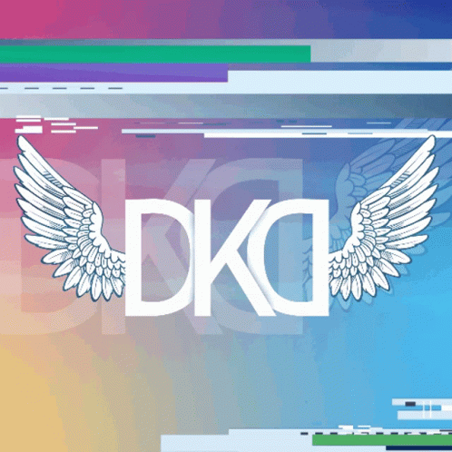 Animated logo reveal for DKD Clan, featuring white text and wings on a colorful gradient background.