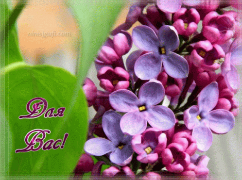 Beautiful purple and pink lilac flowers with the message 'For You!' displayed on a green background.