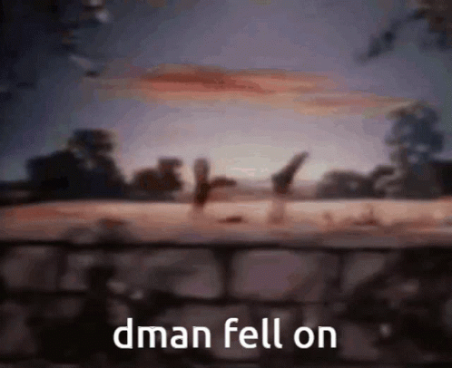A blurred, low-quality image with the text 'dman fell on' displayed in white letters.