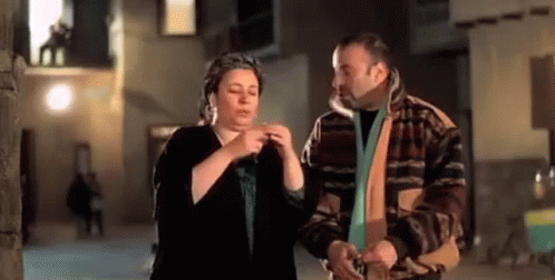 Abla Kamel and Mohamed Saad in a scene where Abla Kamel uses eye drops to simulate crying, deceiving El-Lemby.