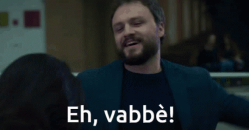 Don Massimo from Doc Nelle Tue Mani, played by Lorenzo Frediani, says "Eh, vabbè!" with a slight smile.