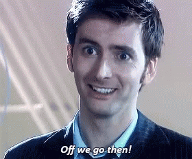 a man is smiling and saying `` off we go then '' .