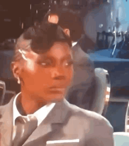 Doechii rolling her eyes with a sassy expression while wearing a grey suit and tie.