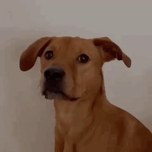 A brown dog reacts with a surprised 'Wooow...' expression, looking directly at the camera.