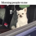 One dog is alert and awake, while another is sleepy and groggy, representing morning people versus me.
