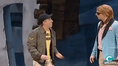 Don Antonio Falla and another performer on stage, likely from the Cádiz Carnival (COAC), engaging in a lively act.