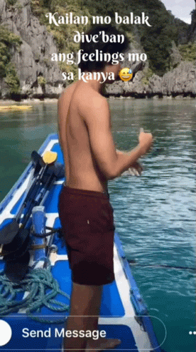 Donny Pangilinan dives into clear blue water from a boat, with a playful caption about feelings.