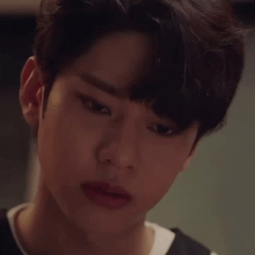 Kim Donghyun's close-up shows him with eyes closed and mouth open, appearing sad and distressed.