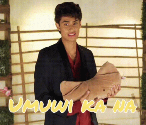 Donny Pangilinan holds a stuffed arm pillow, expressing 'Umuwi Ka Na' and 'Miss Na Kita'.