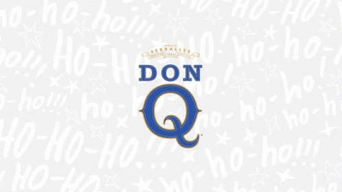 Animated logo for Don Q Rum, featuring the brand name and 'Familia Serralles' against a festive background.