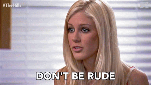 Heidi Montag delivers a stern 'Don't Be Rude' message, looking directly at the camera with a serious expression.