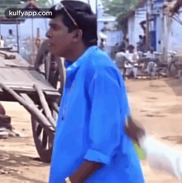 Comedian Vadivelu in a hilarious scene from 'Vetri Kodi Kattu', reacting comically after spraying something.