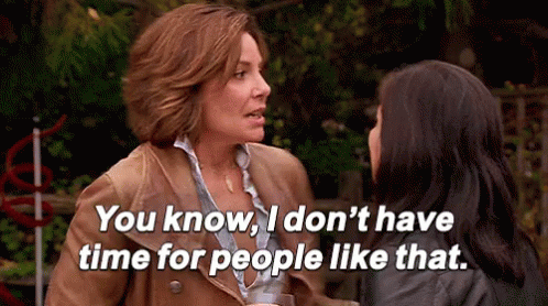 A woman emphatically states, 'You know, I don't have time for people like that,' in a memorable moment.