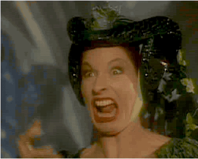A woman in a green dress screams and transforms into a scary monster, then a menacing viper with fangs.