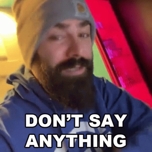 Daniel Keem, wearing a beanie and hoodie, makes a 'shhh' gesture with 'DON'T SAY ANYTHING' text.