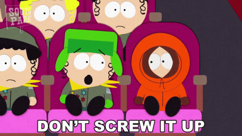 Kyle Broflovski and Kenny McCormick from South Park react to "Don't Screw It Up" in a movie theater.
