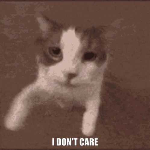 A cute cat's face zooms in with the text 'I DON'T CARE' appearing, creating a popular meme.