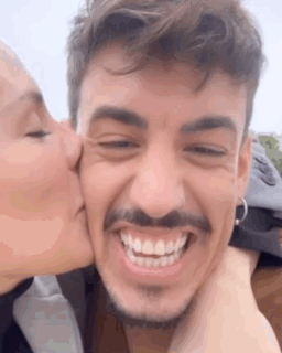 Jessica Bueno and Luitingo share a sweet moment, with Jessica kissing Luitingo on the cheek as they both smile.