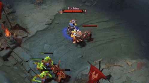 Intense Dota 2 gameplay featuring SF (Shadow Fiend) and Techies, culminating in a massive explosion.