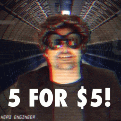 Double Dougs' Head Engineer presents a '5 For $5' deal with a glitchy, retro aesthetic.