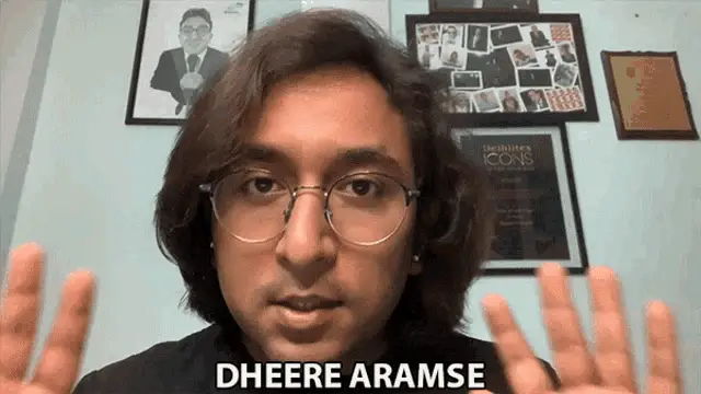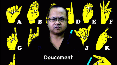 Man demonstrates 'Doucement' (slowly/gently) in French Sign Language (LSF).
