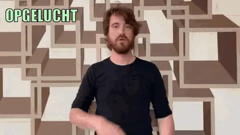 A woman demonstrates sign language for 'BLUT' in a video about Dovencultuur Ngt.