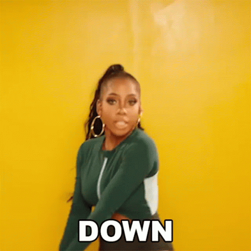 Sevyn Streeter dancing in a green top and black shorts against a vibrant yellow background.