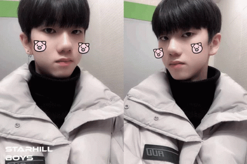 Jeon Doyum, a K-pop idol, poses for a picture wearing a light Starhill Boys puffer jacket.