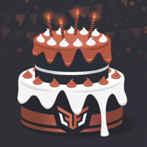 Animated birthday cake featuring the Draftbot logo, complete with lit candles and a 'Happy Birthday' message.