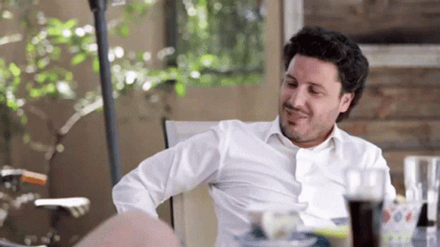 Dritan Abazovic in a white shirt, relaxing outdoors at a table with a drink.