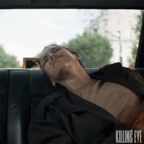 Villanelle (Jodi Comer) is severely wounded and urgently tells the driver to 'Drive faster!' during a tense taxi ride in Killing Eve.