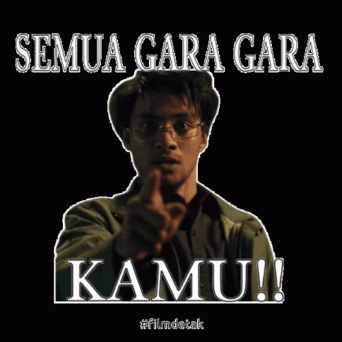 Drjati points accusingly at the viewer with the text 'All Because of You!' from Film Detak.