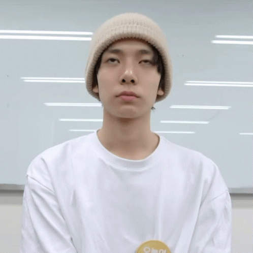 Heeseung in a beanie and white shirt, looking confused or thoughtful during a Drunkszn moment.