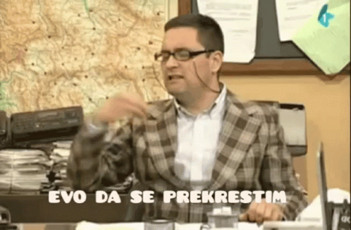 Djordje Cvarkov from Drzavni Posao expresses exasperation with the phrase 'Evo da se prekrestim'.
