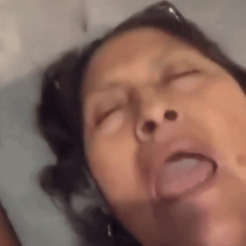 A woman, possibly a mom, makes funny snoring and whistling sounds with her tongue out while sleeping.