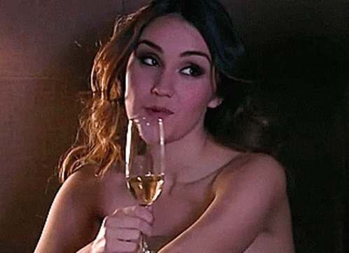 Dulce Maria raises a glass of champagne, smiling and enjoying a celebratory moment.