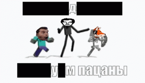 Meme animation featuring Flynn Fly Taggart, a Minecraft-style character, and a fox with a rifle.