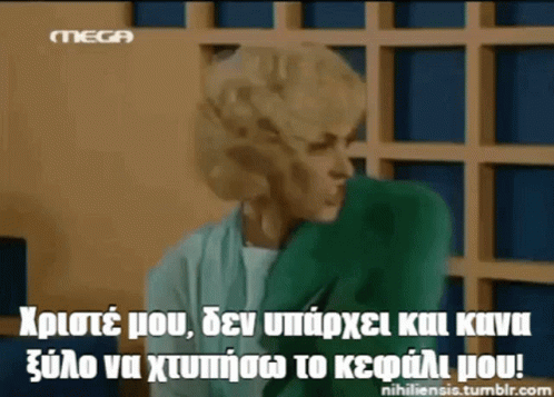 Nteni Markora from Duo Ksenoi expresses extreme frustration, wishing for wood to hit her head.
