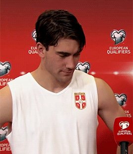 Dusan Vlahovic (DV9) smiling in his Serbia jersey during European Qualifiers.