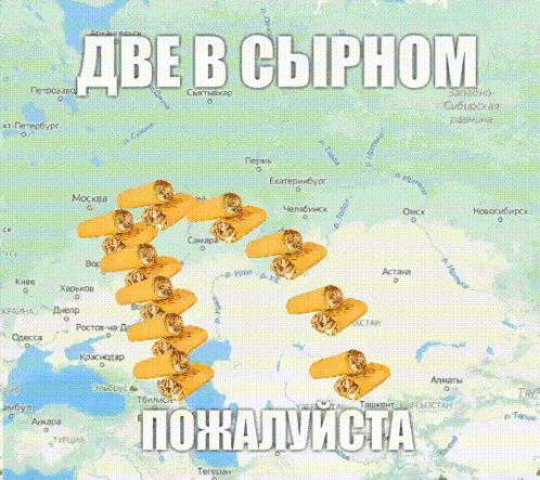 A Russian map with shawarma icons and the meme phrase 'Two in cheese, please,' referencing migrants.
