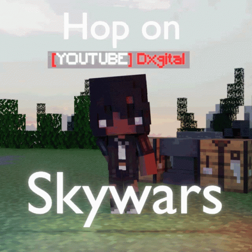 Minecraft players Dxgital and Thomasyk invite viewers to 'Hop on Skywars' in this animated graphic.