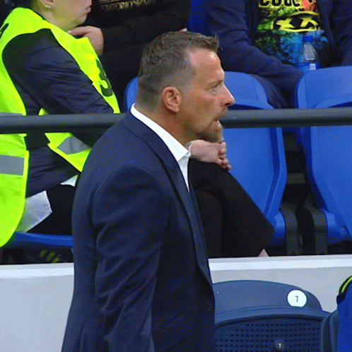 Dynamo Moscow coach Jokanovich shows intense emotion on the sidelines during a football match, gesturing passionately.