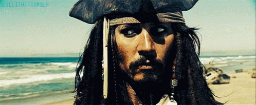 Captain Jack Sparrow, with his iconic pirate hat, stands on a sunny beach.