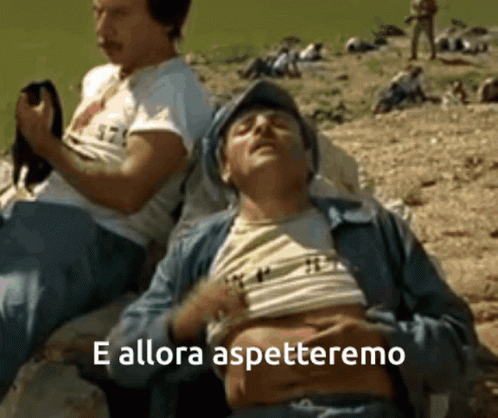 Aldo from Aldo, Giovanni & Giacomo, lying down and saying 'E allora aspetteremo' (And then we will wait).
